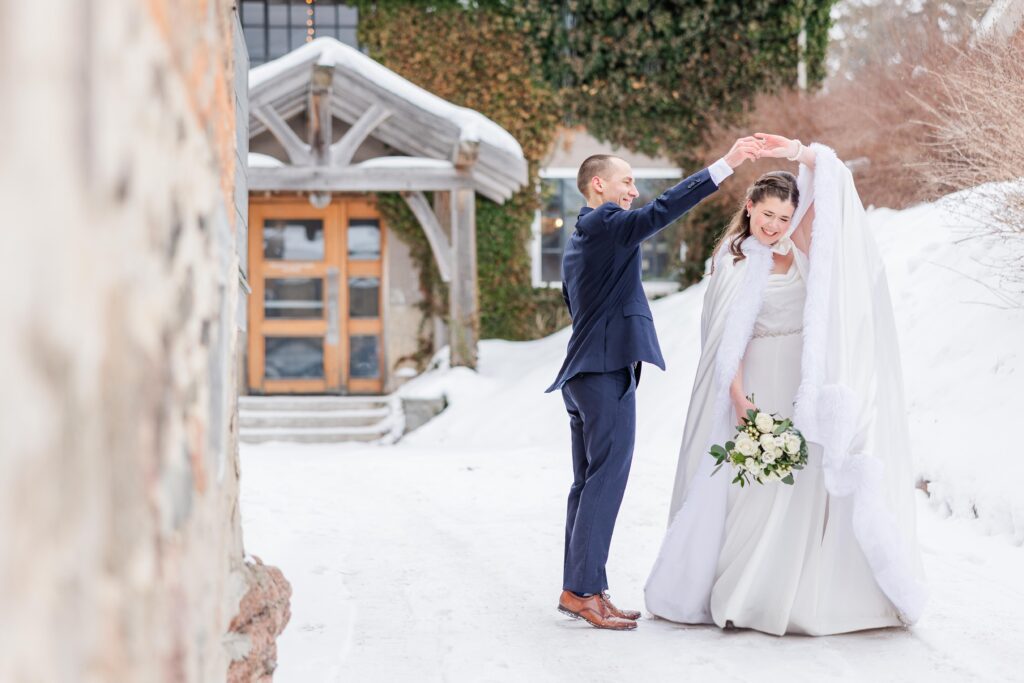 What stood out most wasn’t just the snow it was how present Amanda & Marc were with each other and with every single guest. With a smaller guest count, the love in the room was impossible to miss. Conversations felt meaningful, moments felt intentional, and everyone felt included. There was no rushing, no distractions just genuine connection and a whole lot of heart.