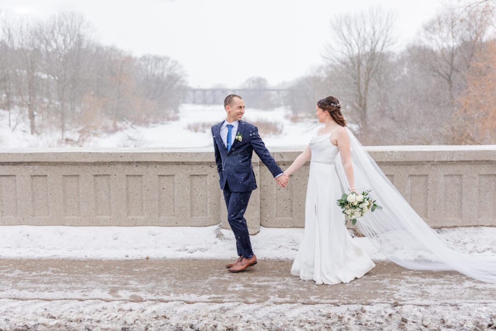Amanda & Marc were hoping for snow… and Mother Nature absolutely delivered. Big flakes started falling, turning St. Jacobs into a winter wonderland and giving the entire day this calm, magical feel. It was one of those moments where you can’t help but smile and think, this is exactly how it was meant to be. The snow added such a peaceful, almost movie like layer to their day.